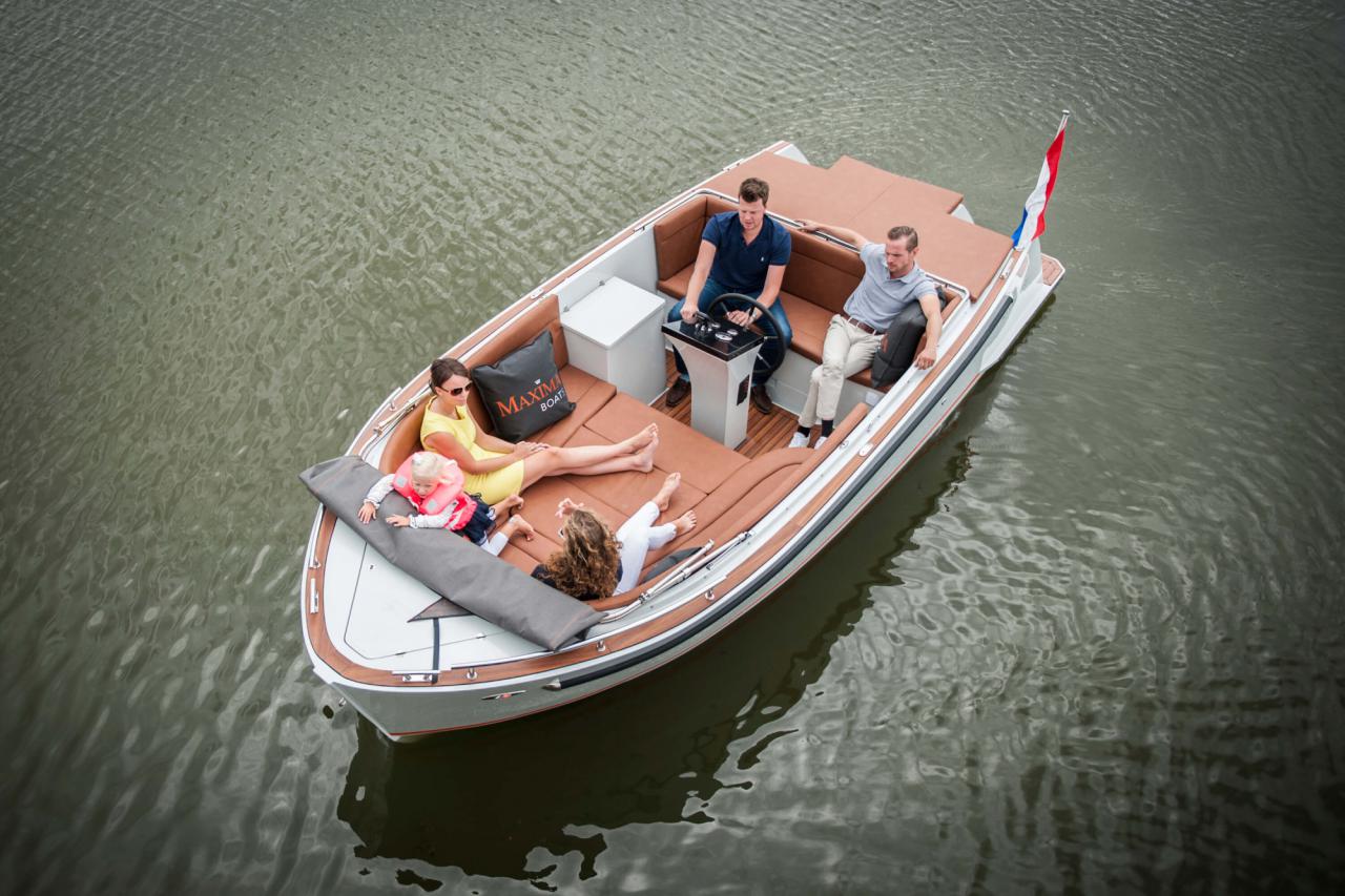 Maxima 650 FlyThe Maxima 650 Flying Lounge is completely new on the market and is available with an outboard engine in the well up to a whopping 100 hp! Derived from traditional lifeboat lines with a fast-sailing underwater hull with a top speed of just over 50 kilometers per hour. This boat is unique on the market and equipped with a self-draining cockpit with optimum layout for upto 10 People.